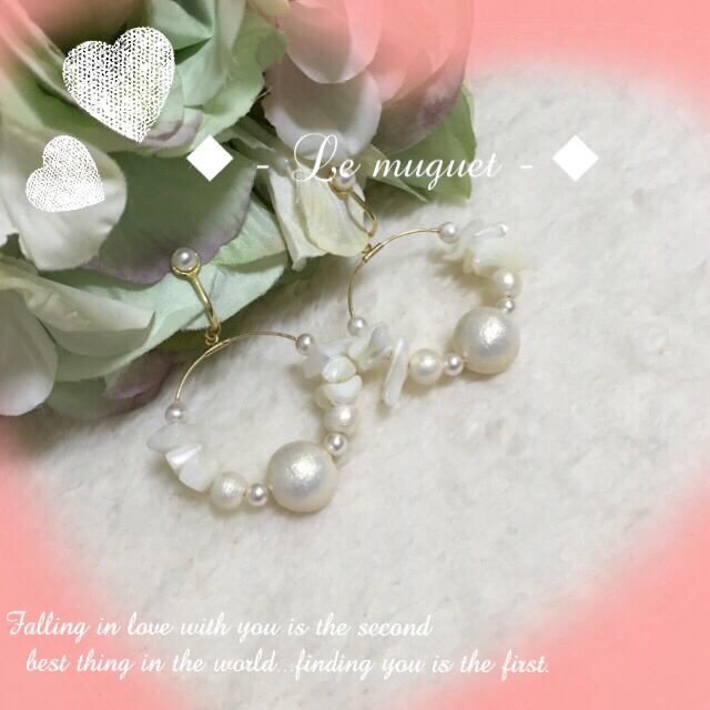 コットンパール、プラスチックパール、スワロパール、マザーオブパールのピアス・イヤリング。